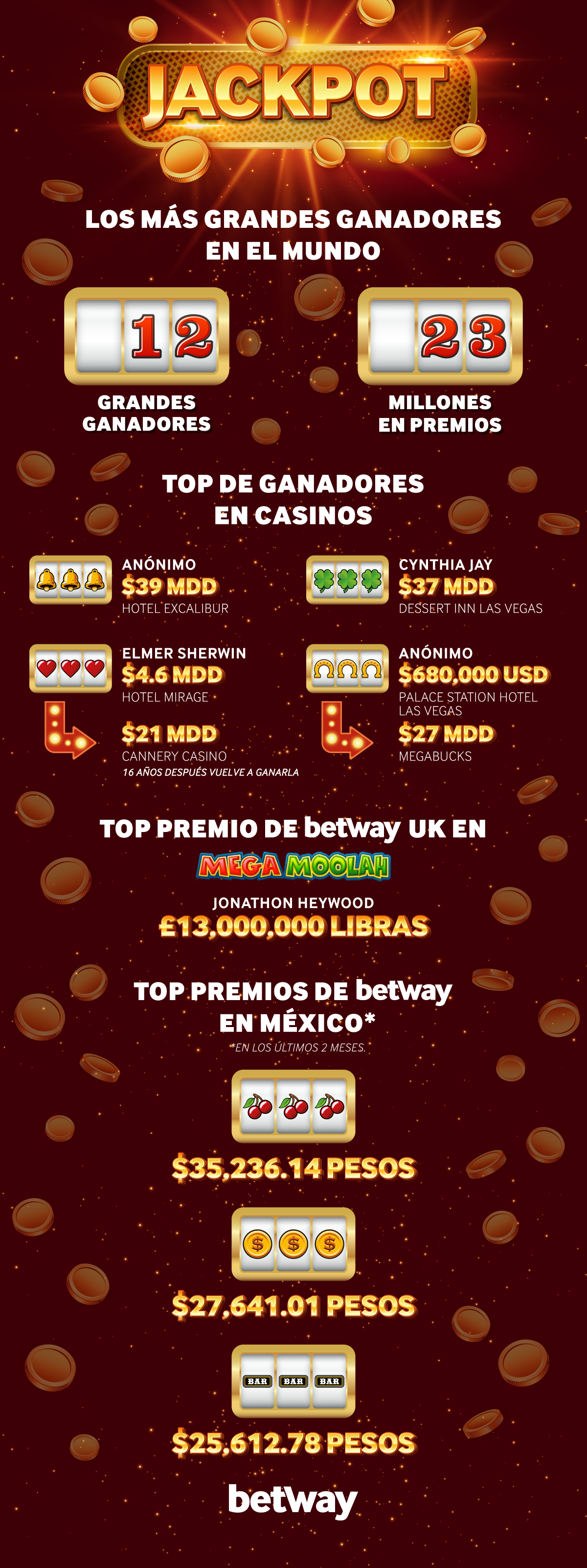 Así que en Betway Insider y te contamos los premios más altos que han ganado estos grandes afortunados, chécalos y a continuación, no te pierdas nuestra información sobre jackpots.