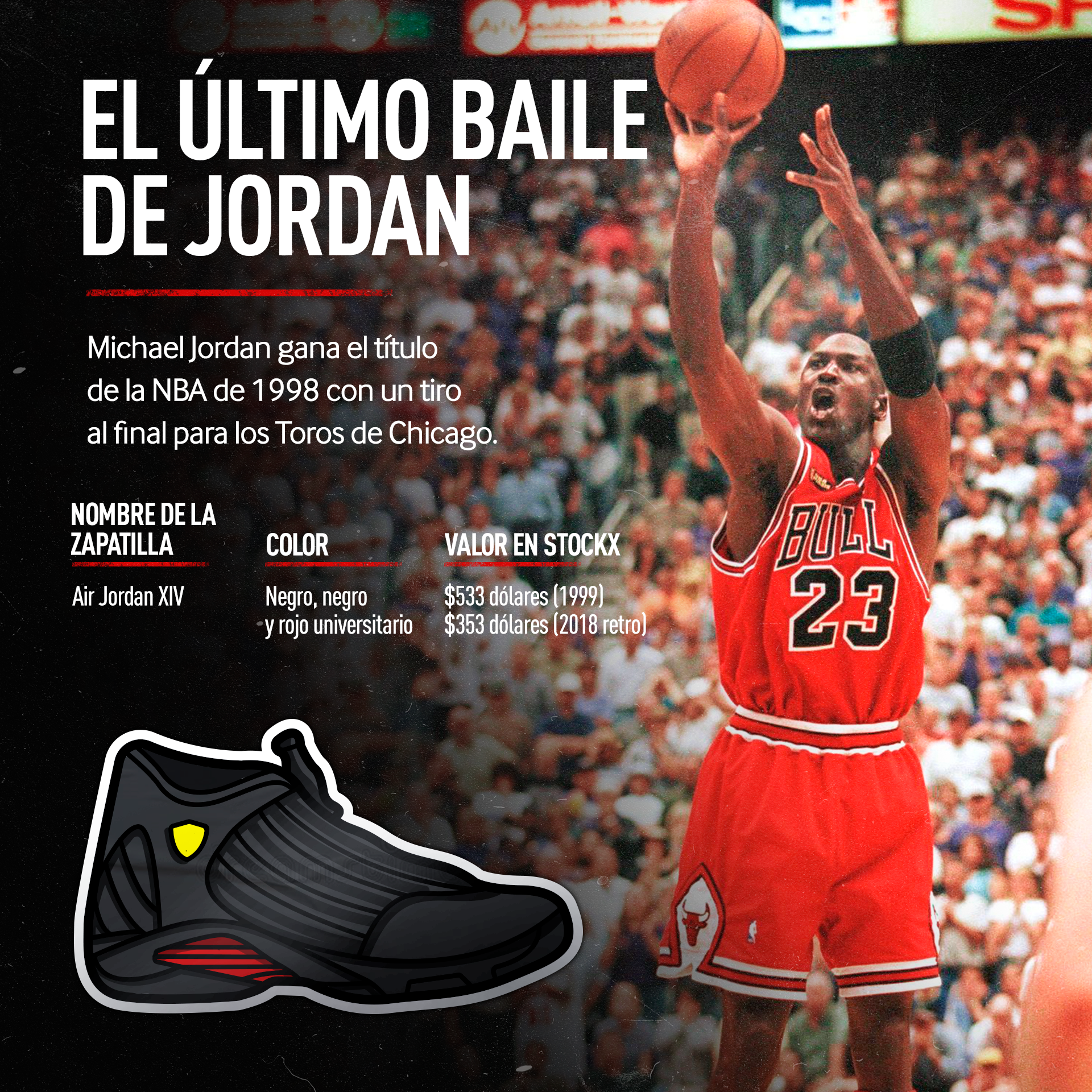 Gracias a un aumento en la popularidad después del documental The Last Dance, los XIV originales de 1999 en la famosa combinación de colores negros ‘Last Shot’ actualmente tienen un valor de alrededor de $533 dólares en StockX, mientras que la versión relanzada de 2018 actualmente cuesta $353 dólares.
