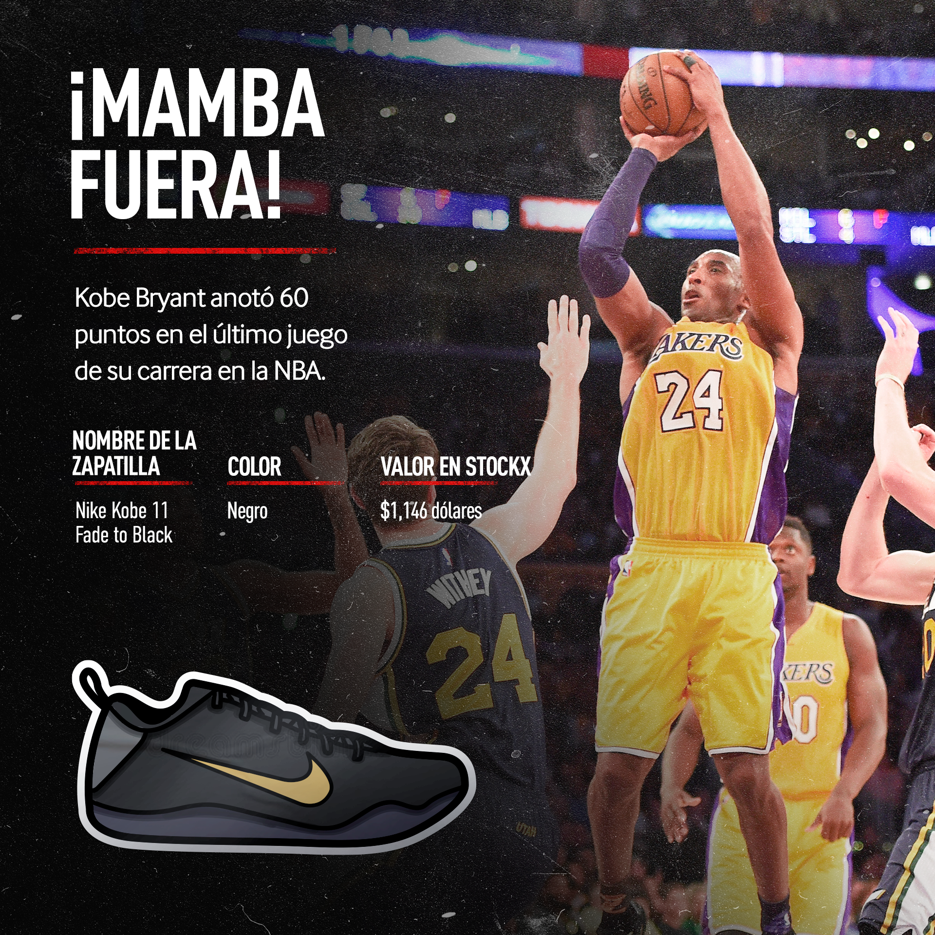 Los Kobe 11 negros y dorados del juego final de Black Mamba ahora se venden por $1,146 dólares en StockX, un precio que se ha más que duplicado tras su muerte el 26 de enero. Curry del Downtown