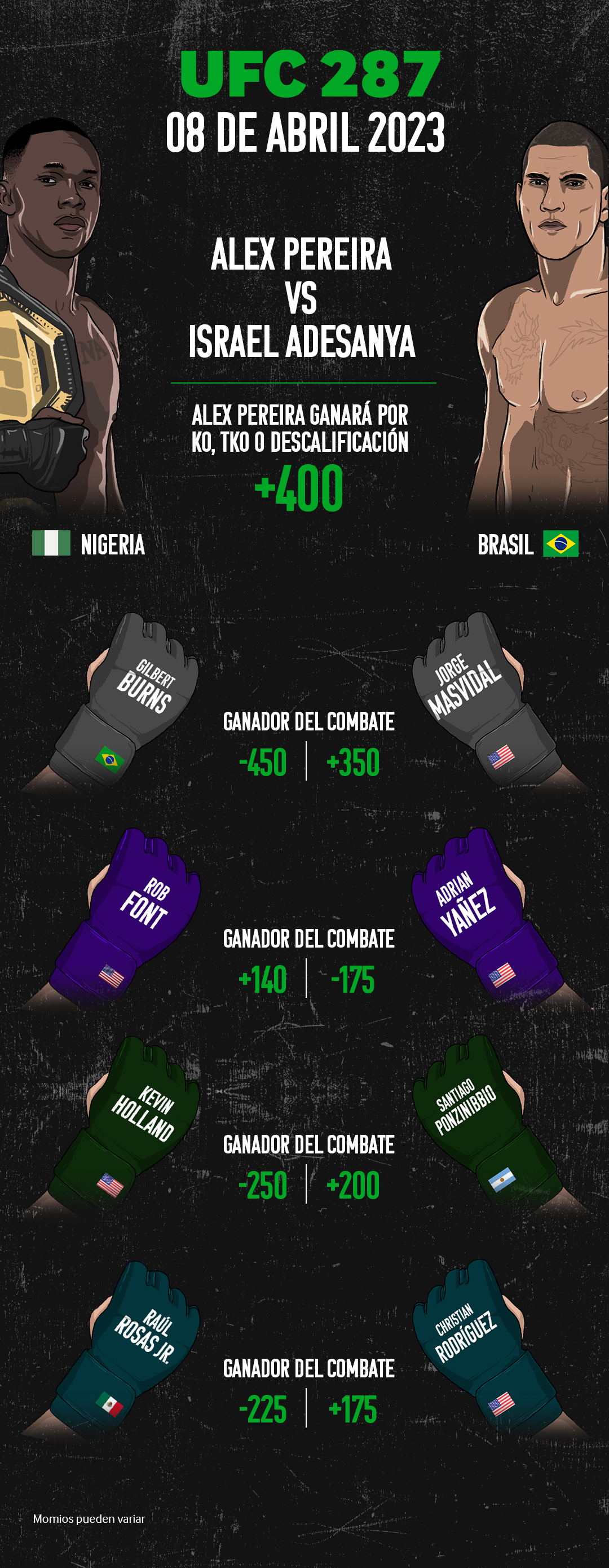 La expectativa que podemos tener de la pelea estelar de la UFC 287 de este sábado es gigante. Se viene un duelo grande, intenso, con muchas emociones por despertar y con muchas sorpresas listas en Betway Sports para que disfrutes al máximo este duelo. Checa los súper momios y los mercados de apuestas UFC para este duelo. Ellos van a pelear por el título, pero el campeón de verdad puedes ser tú.